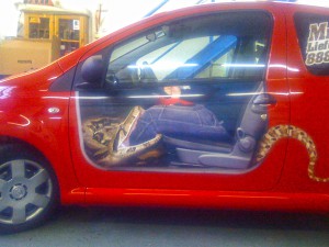 Vielleicht soll es nur die Domain der eigenen Firma als Folie auf der Heckscheibe des Fahrzeugs sein. Vielleicht planen Sie aber auch die komplette Fahrzeugbeschriftung / Beschriftung Ihres PKW oder LKW. Neben Dingen wie Kontaktdaten und Logo in monochromer Folie (Siehe auch Folienbeschriftung Kiel), lassen sich auch aufwändige Designs per Digitaldruck-Folie bei der Fahrzeugbeschriftung aufbringen.